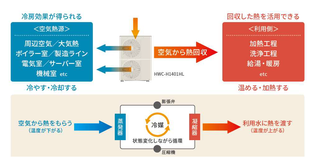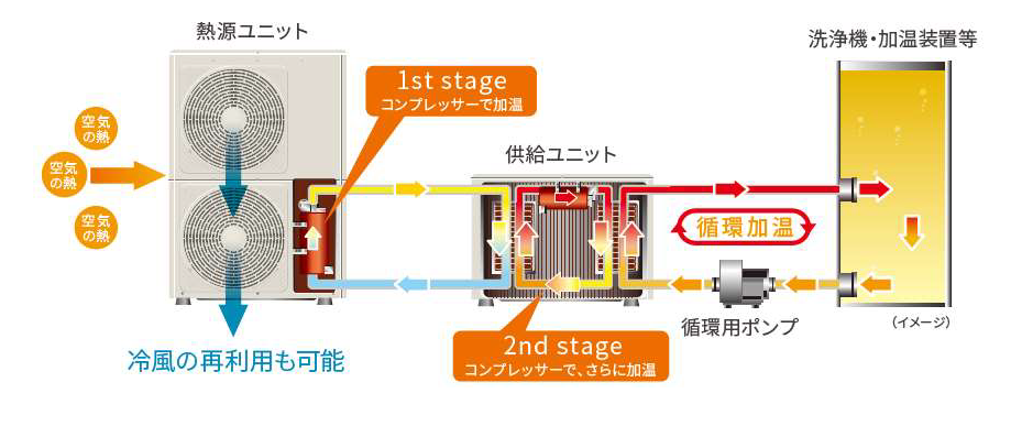 30℃の低温水から90℃の高温水の供給が可能!温熱供給が要求されるさまざまな用途に
