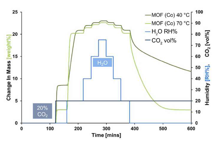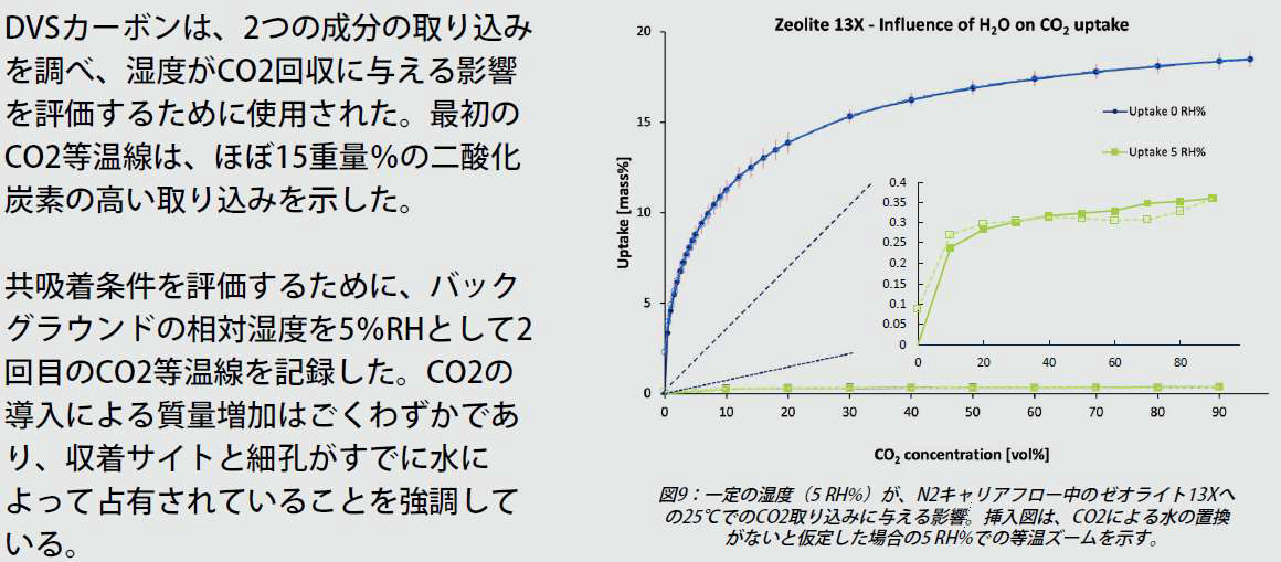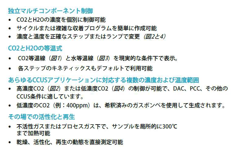 炭素の回収、利用、貯蔵アプリケーション評価に最適! 実際の条件下でのCO2吸着剤評価を可能にします! 世界最先端の重量式CO2回収分析装置 幅広いCO2濃度で温度と湿度の両方を制御!! 事例:燃焼後Zeolite 13X CO2と水の共吸着測定