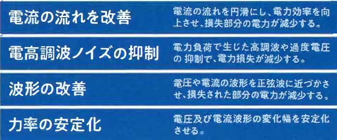 • 有害成分であるインピダンス、高調波、電磁波などを減らします。