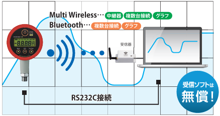 • Multi Wireless:920MHz、複数台の計測が可能、中継器